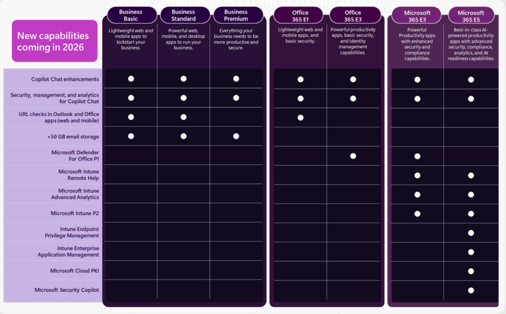 Partendo dalle novità, Microsoft è conscia che le esigenze delle imprese sono diverse da quelle di pochi anni fa tra minacce informatiche sempre più complesse, infrastrutture IT da gestire in modo più efficiente e una trasformazione digitale che ormai passa necessariamente dall’adozione di tecnologie AI-driven. Per questo, saranno integrati nuovi livelli di sicurezza e capacità gestionali direttamente all’interno delle sue suite, in modo che ogni organizzazione possa modernizzare il proprio ambiente di lavoro senza dover ricorrere a soluzioni frammentate.