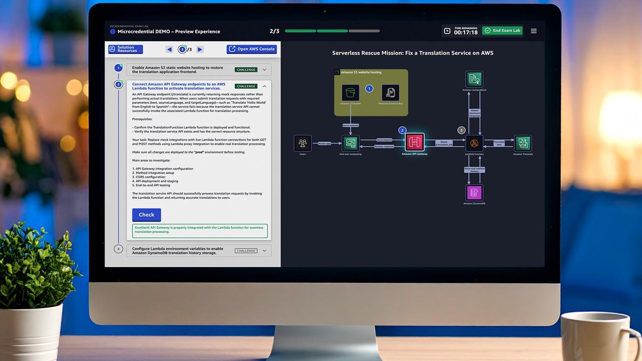 Un altro tassello importante per migliorare l’occupabilità dei candidati sono le microcredential, una nuova forma di validazione pratica all’interno di Skill Builder. A differenza delle certificazioni, che misurano la comprensione teorica, le microcredential dimostrano la capacità di svolgere compiti specifici in ambienti AWS reali.