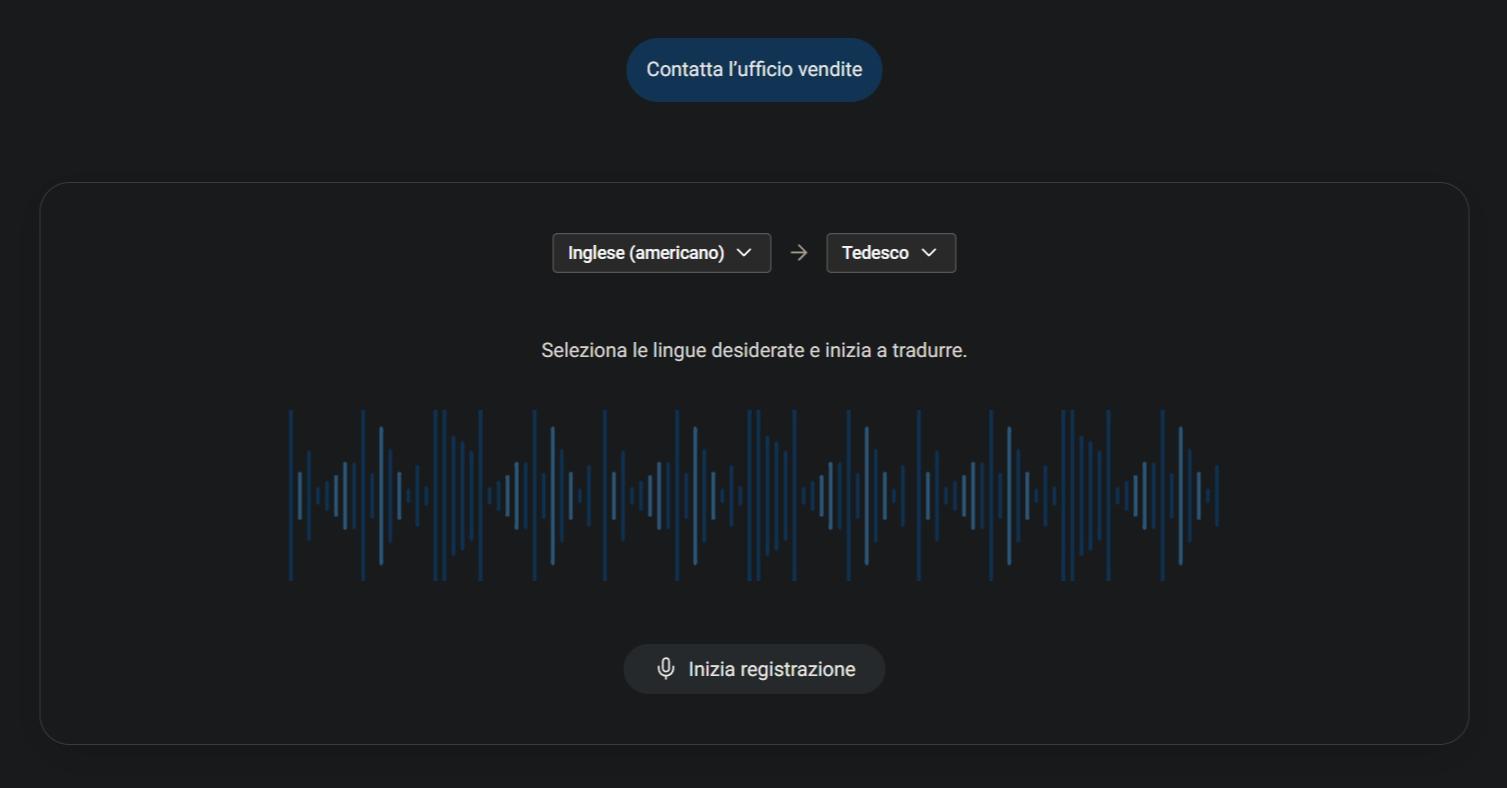 - Comprensione bidirezionale, non solo testo sullo schermo. Gli operatori possono seguire la conversazione attraverso l’audio tradotto in tempo reale, insieme alla trascrizione e alla traduzione sullo schermo, in modo da poter rispondere in maniera naturale e sicura