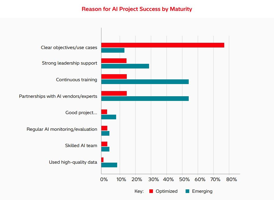 Governance e competenze restano aree critiche. Solo il 26% delle aziende europee si definisce leader nel campo della governance AI, mentre la maggioranza considera il reskilling e l’assunzione di figure specializzate una priorità. La visione strategica a livello executive appare chiara solo per due terzi delle aziende. In Italia, la situazione è più sfidante, con appena il 18% che considera la governance AI industry-leading, mentre il 60% ritiene che gli executive abbiano una visione chiaramente definita, a dimostrazione di come il gap tra tecnologia e leadership rimanga significativo.