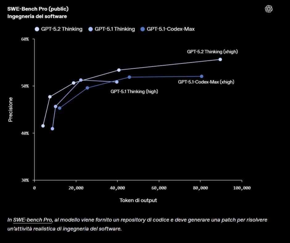Per sviluppatori e architetti software la novità pratica è duplice. Da un lato, nomi e mapping dei modelli nelle API sono stati unificati (con gpt-5.2 per la variante Thinking e gpt-5.2-chat-latest per Instant), mentre dall’altro sono state introdotte nuove opzioni di ragionamento (un livello “xhigh” per GPT-5.2 Pro) e un prezzo per token che riflette l’aumento di capacità e costo computazionale.