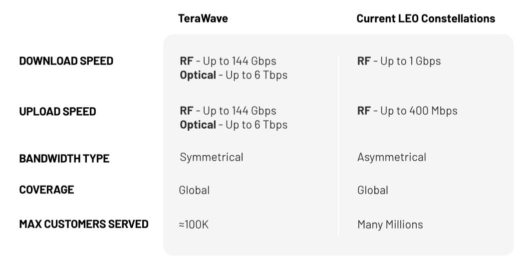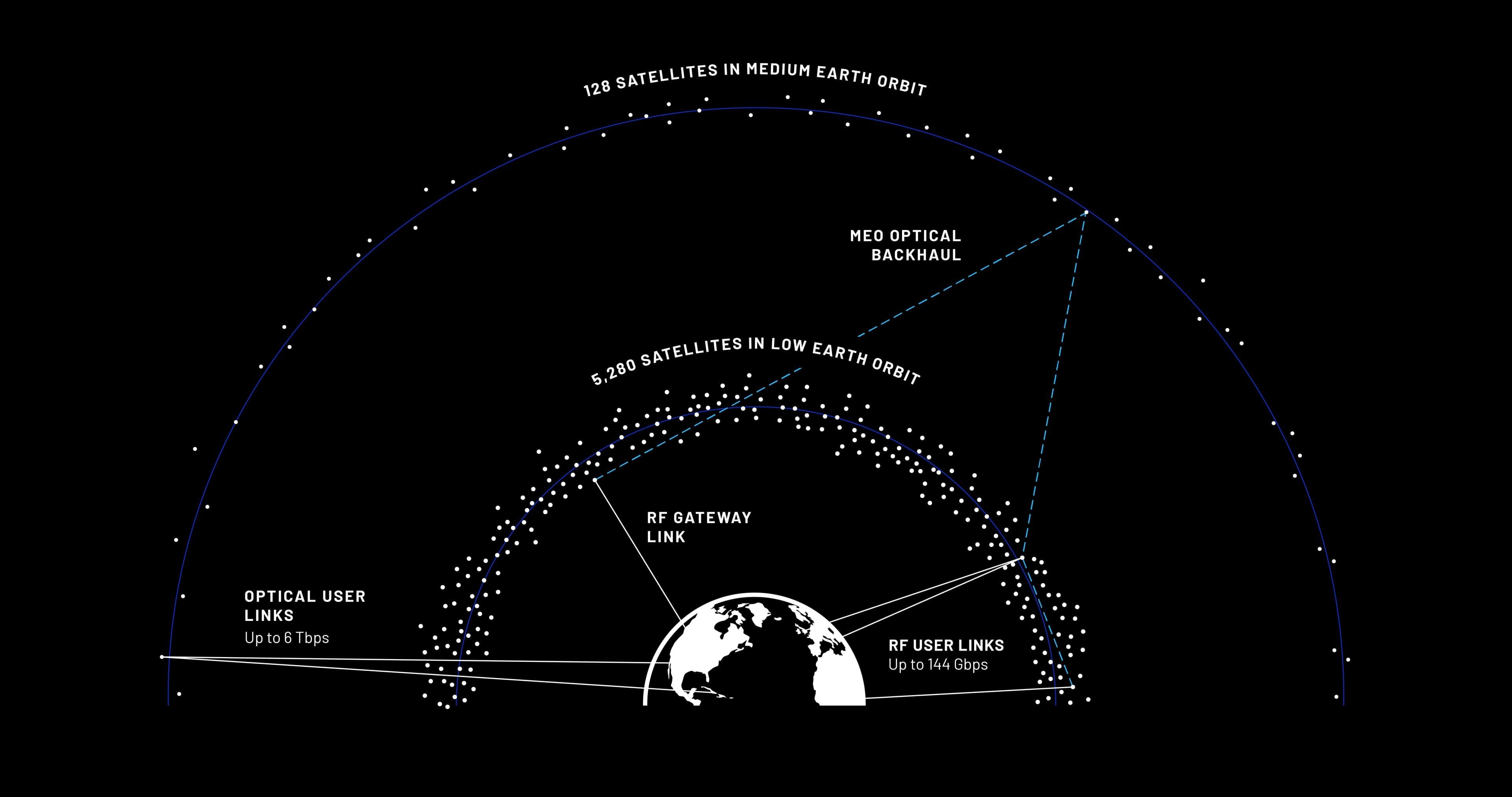 Dal punto di vista architetturale, TeraWave si basa su una costellazione multi-orbita composta da 5.408 satelliti interconnessi tramite collegamenti ottici. La maggior parte di questi asset sarà collocata in orbita terrestre bassa, la stessa fascia utilizzata da Starlink, per garantire comunicazioni dirette con le stazioni a terra attraverso collegamenti radio tradizionali. In questa configurazione, le velocità per singolo cliente possono arrivare fino a 144 gigabit al secondo, già un valore che supera ampiamente le offerte commerciali oggi disponibili.